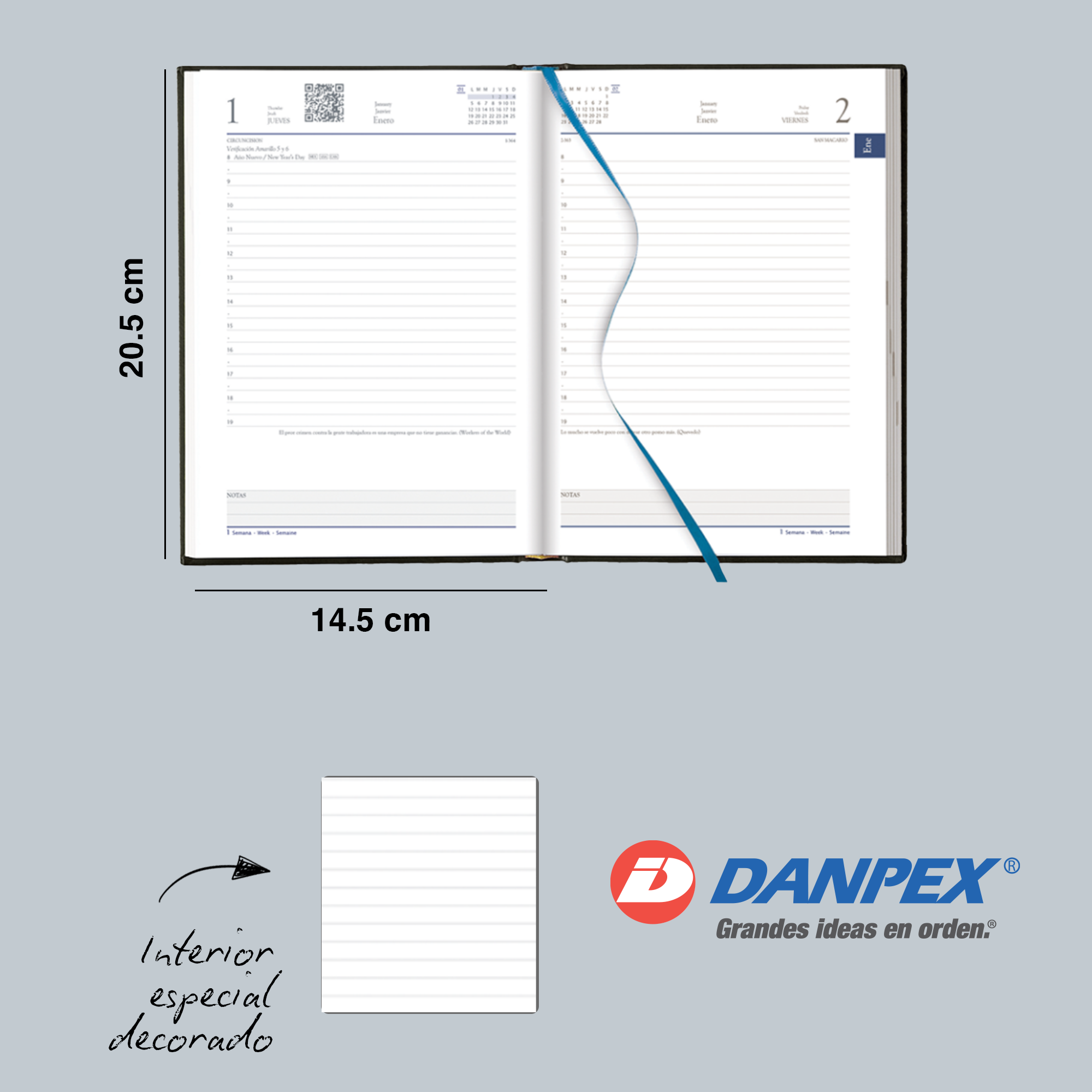 Su formato diario te permite organizar citas, pendientes y recordatorios de manera clara, ayudándote a mantener el control de tus actividades sin perder detalle.