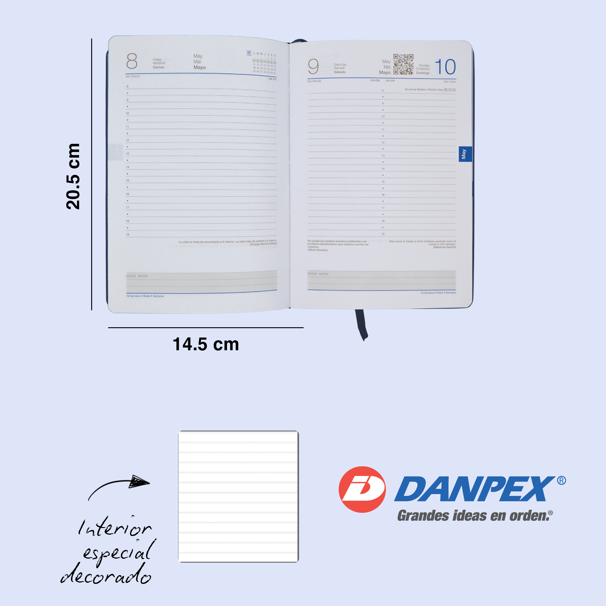 Con su formato diario, podrás organizar tus citas, pendientes y metas de manera clara y sencilla, asegurando que cada día esté perfectamente planificado. El papel blanco de alta calidad ofrece una escritura fluida y sin traspaso, ideal para cualquier tipo de pluma o marcador.